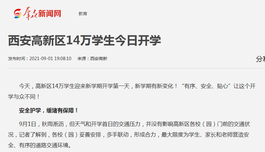 西安高新区14万学生今日开学